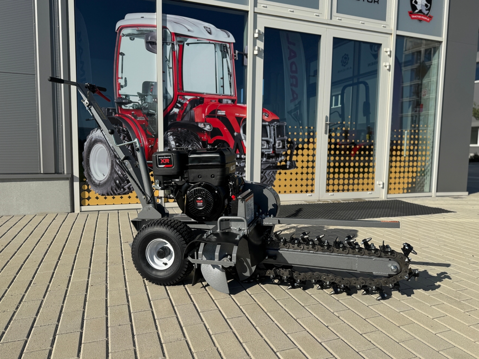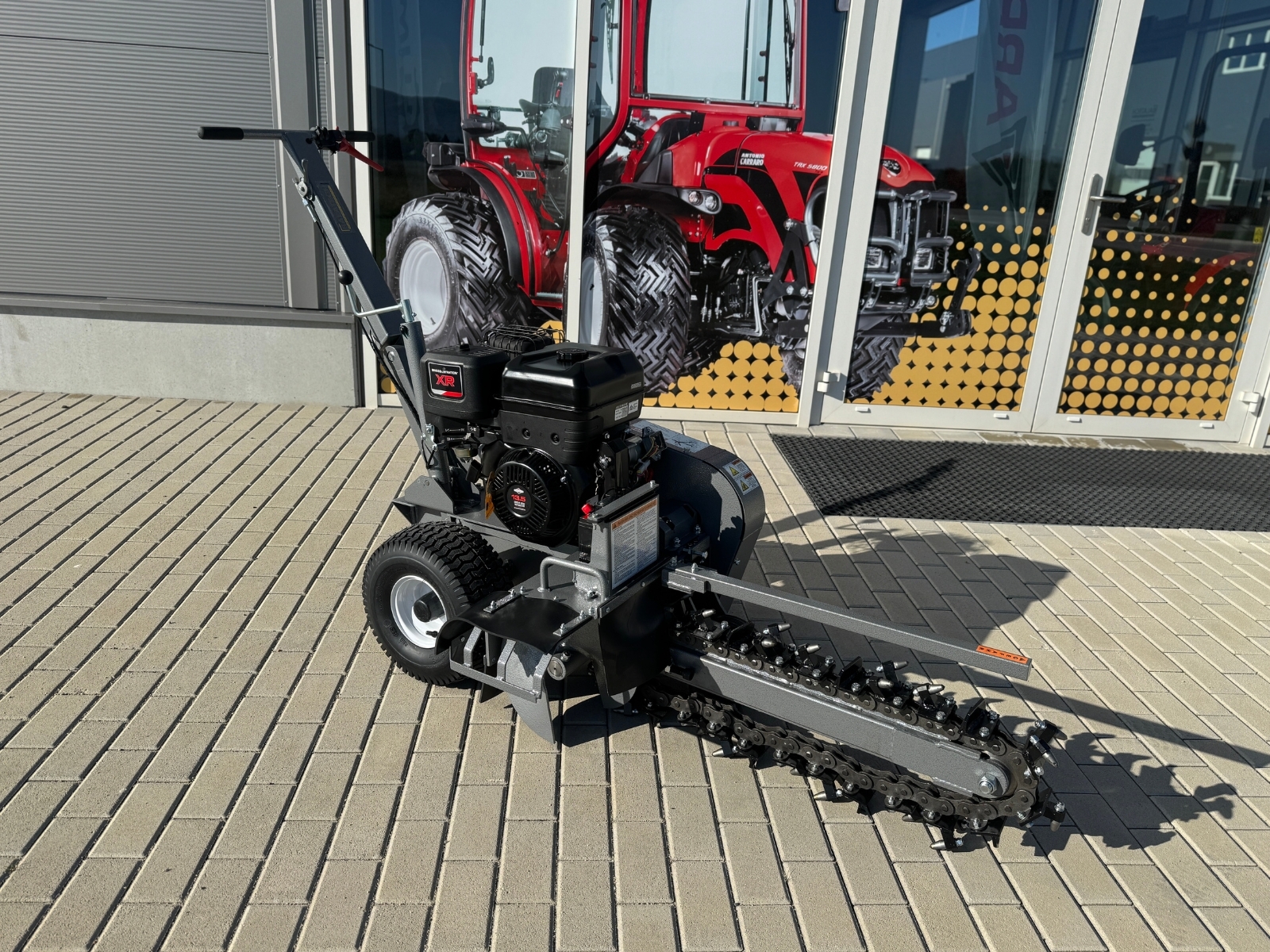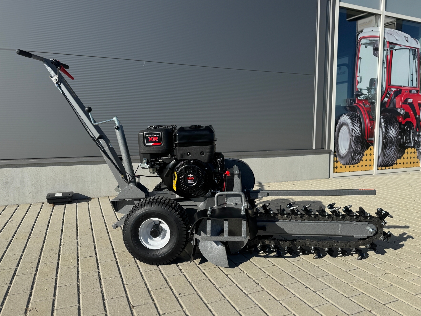 Zemná fréza GF-600pro vytvára zákopy a drážky so šírkou 10 cm a hĺbkou 60 cm. Tento model je vybavený výkonným štvortaktným benzínovým motorom Briggs & Stratton s výkonom 15 HP a poskytuje potrebný výkon aj v náročnejších pôdnych podmienkach. Použitie značkového motora zaručuje kvalitu, odolnosť a spoľahlivú prevádzku. Robustná rezná reťaz je vybavená 27 jednotlivo vymeniteľnými reznými zubami z karbidovej zliatiny a zaisťuje vysokú účinnosť. Dlhá čepeľ umožňuje maximálnu pracovnú hĺbku, zatiaľ čo integrovaný šnek prepravuje vykopaný materiál do strany – pre čisté stavenisko a výkopovú kapacitu až 60 m za hodinu.
